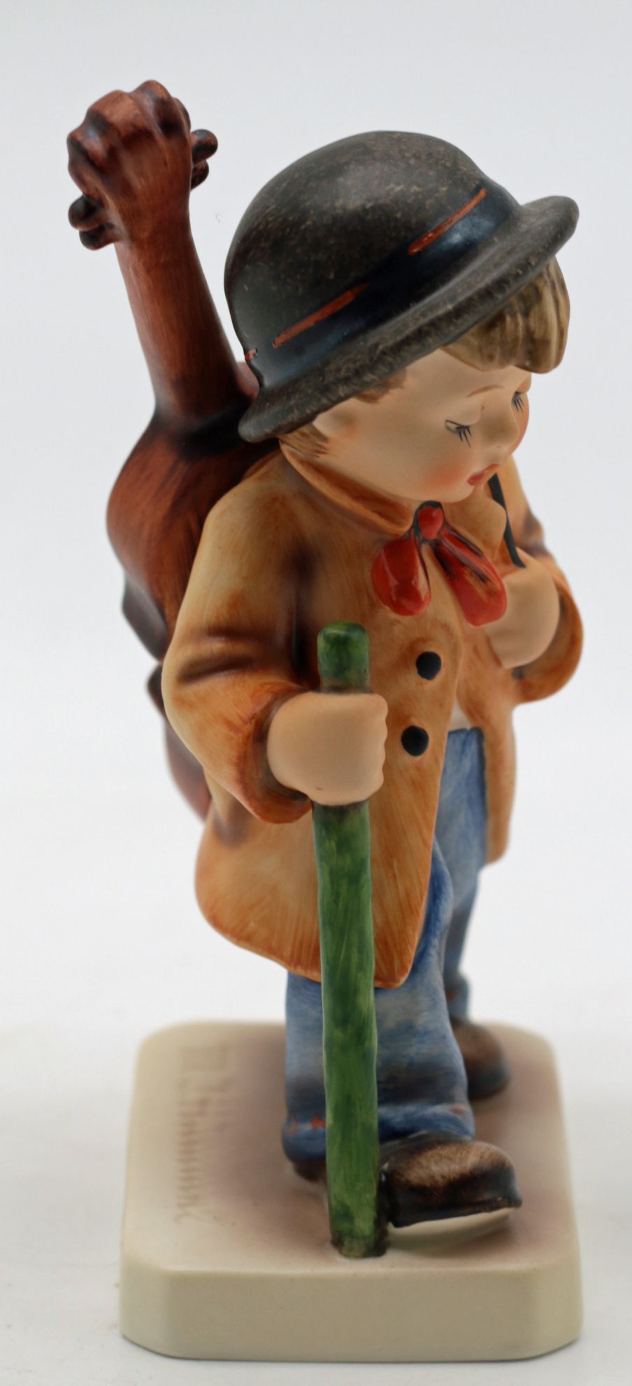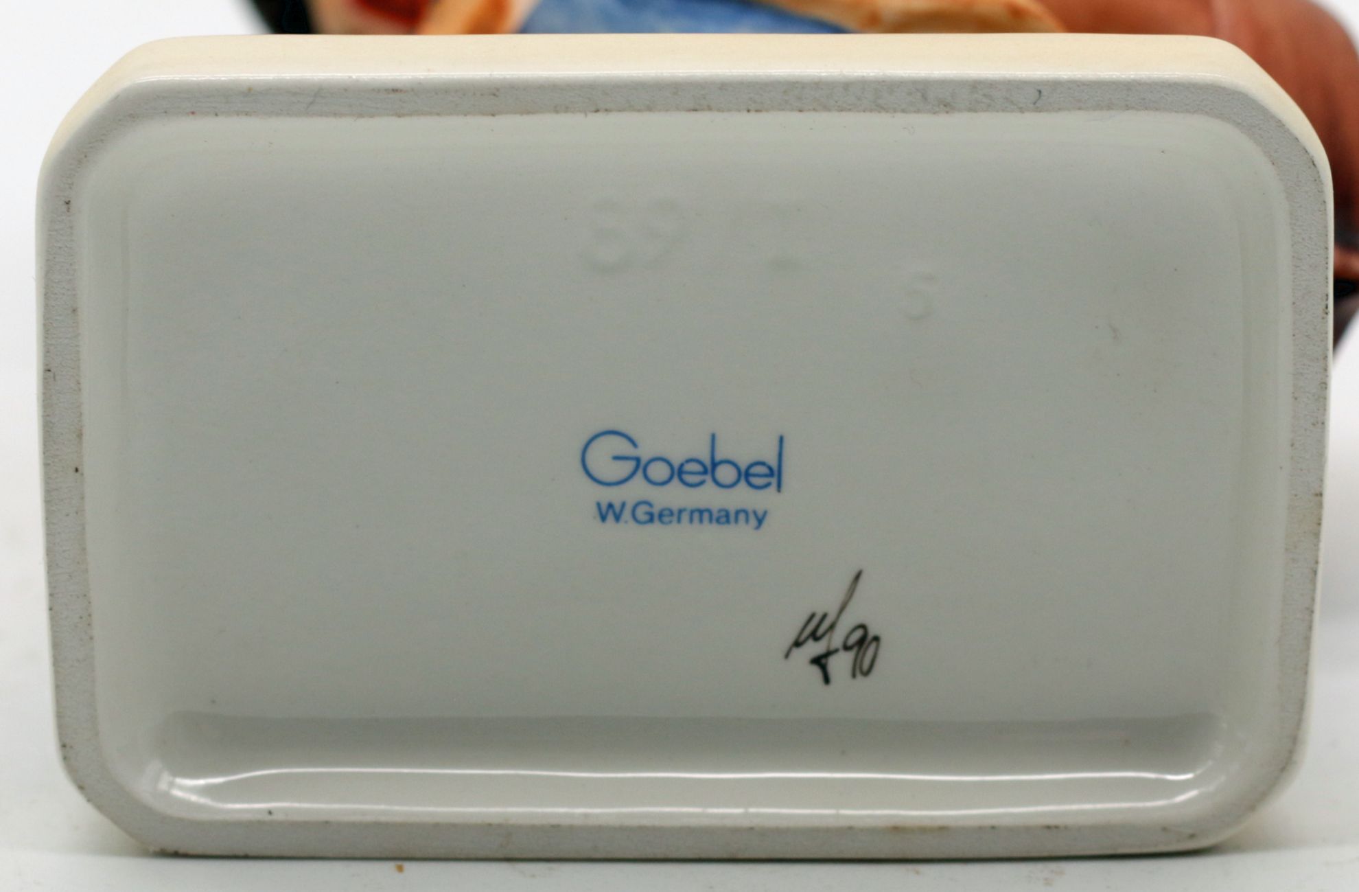 OverviewGoebel Hummel Little Cellist figurine, model 89/I, depicting a seated child playing a cello. Hand-painted porcelain in the traditional Hummel style, with soft matte glaze and gentle tonal transitions. The subject reflects the mid-20th century Bavarian figurative tradition associated with the designs of Sister Maria Innocentia Hummel.Dating / BackgroundProduced by Goebel, Germany, and based on the artwork of Sister Maria Innocentia Hummel. This model appears across multiple trademark periods; TMK-6 examples correspond to later 20th century production. The Little Cellist is part of a broader group of musical-themed Hummel figures, which remain consistently collected.Why CollectRecognized Hummel subject within the musical seriesAppeals to both collectors and decorative buyersRepresentative example of Goebel production with hand-painted detailDimensionsHeight: 5 1/4Width: 3 1/8Depth: 3 1/8ConditionNo significant damage observed. Minor surface wear and small manufacturing variations consistent with hand-painted porcelain may be present. Review photographs for complete condition details.