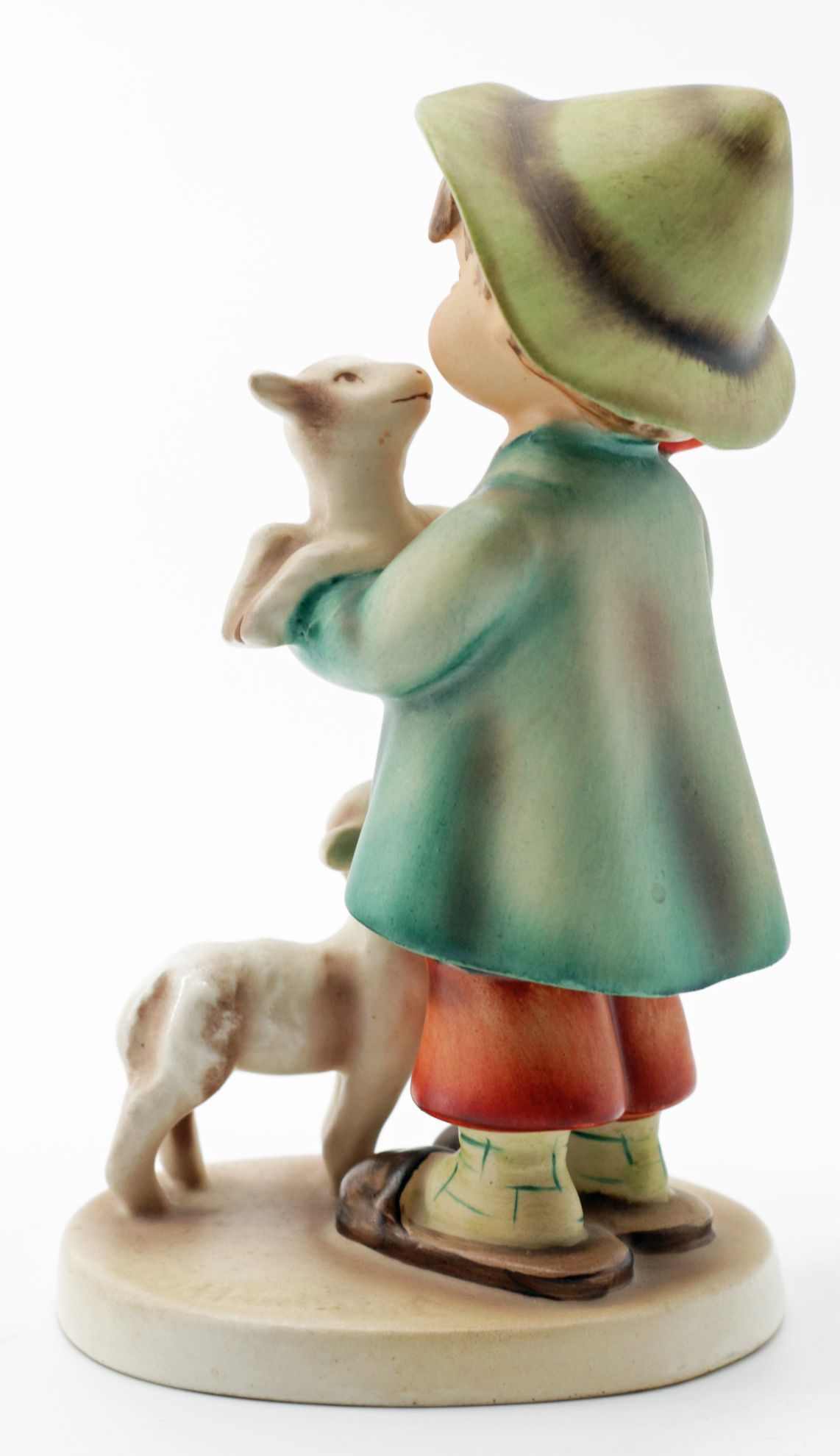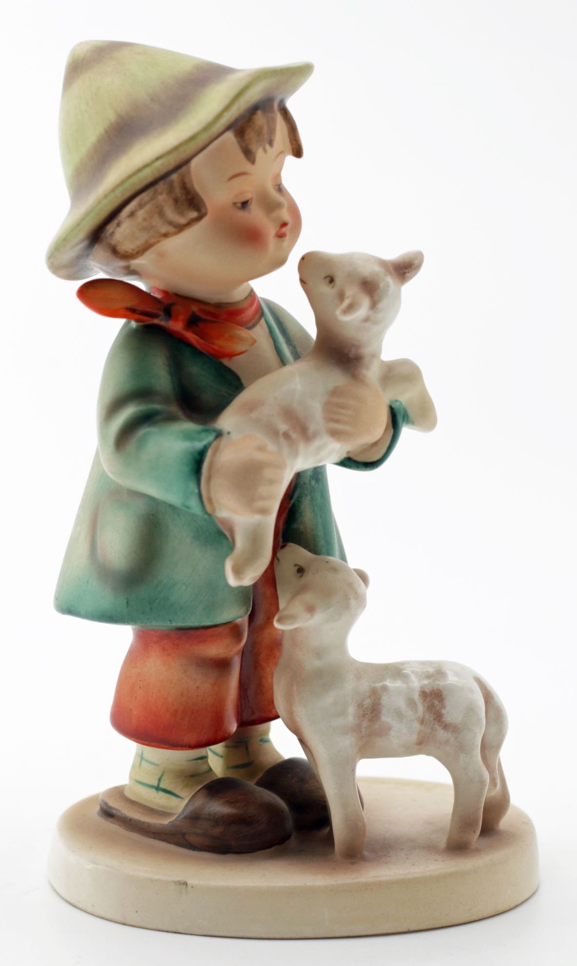 OverviewHummel Shepherd Boy figurine, model 64, produced by Goebel (Germany). A classic and widely recognized Hummel subject depicting a young shepherd standing with two lambs at his feet. Soft modeling, warm hand-painted color, and the pastoral theme that defines traditional Goebel Hummel production. A strong display piece for collectors of Hummel and German porcelain figurines.IdentificationCommon name: Hummel Shepherd BoyModel number: 64Maker: Goebel (Hummel)Origin: GermanyMaterial: Glazed porcelainSubject: Boy with lambs / shepherd figureMarksPlease refer to the base photographs for the trademark (TMK) and any impressed or printed markings. This Hummel is stamped with TMK-2.ConditionPlease review all photographs carefully. Any condition observations visible in the images should be considered part of the description. Light surface wear, minor glaze variation, and small firing/paint irregularities can occur in factory-produced hand-decorated porcelain and may be present.Dimensions (inches)Height: 6 1/4Width: [to be added]Depth: [to be added]BackgroundThe Shepherd Boy is among the enduring Hummel themes associated with the artwork of Sister Maria Innocentia Hummel and produced in porcelain by Goebel. The design is collected across multiple trademark periods (TMK), with small variations possible over time. The combination of an iconic subject and long-running production makes this model a staple within many Hummel collections.ShippingItem will be professionally packed with appropriate protection to help ensure safe delivery. Shipping method will be selected based on size, weight, and destination.